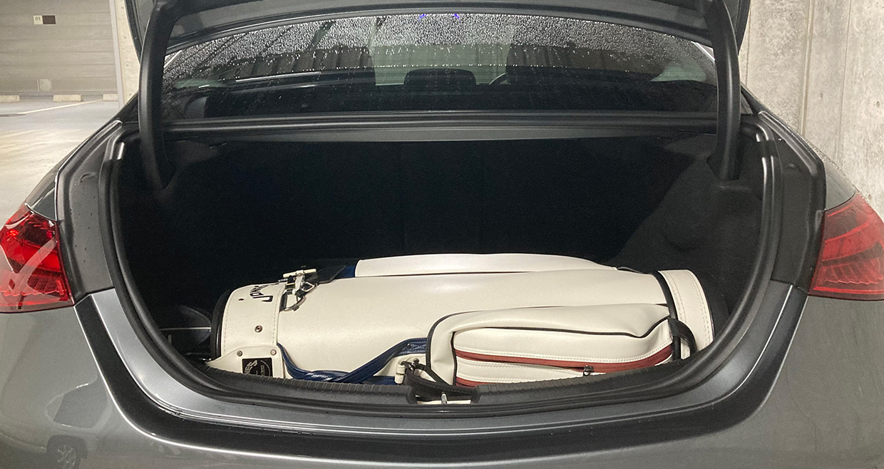 今回は、メルセデス・ベンツ「Cクラス」のセダン「C 220 d アバンギャルド」のキャディバッグ積載量を検証する。シンプルな格好よさを追求した精悍なデザインを特徴とし、従来型よりもホイールベースを25mm延長したことで後席の居住性が向上。デザインとパッケージング(室内の広さ)を高次元で両立させたCクラスは、果たして何個まで積めるのか?