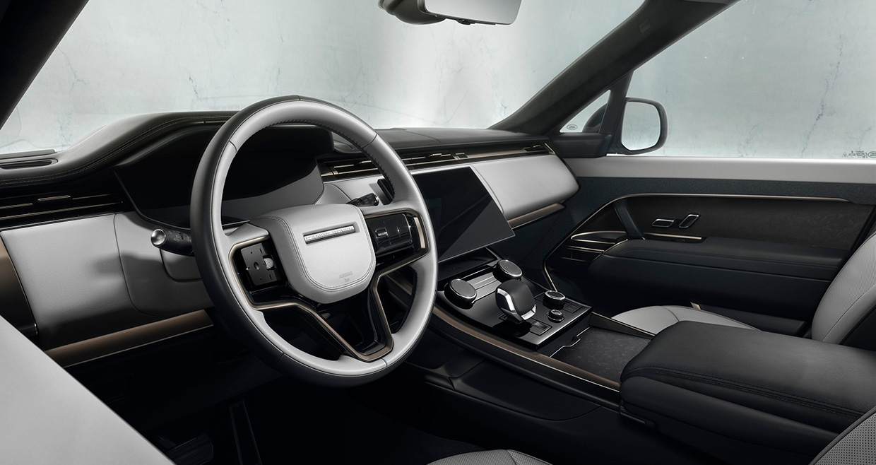 直線基調で颯爽としたエクステリアのデザインはインテリアにも通じている。ダッシュパネルから浮き上がったように見える13.1インチのモニター内と、センターコンソール付近に集約された操作系は直感的で非常に扱いやすい。シートはレンジローバーらしくゆったりとして豪奢な感じがするが、実際に腰掛けてみるとホールド性の高さに驚かされた。また試乗したクルマの表皮はウルトラファブリックと呼ばれる人工皮革だったが、いつもの高級皮革よりも滑りにくく、レンジローバーに相応しい質感の高い素材だと感じられた。