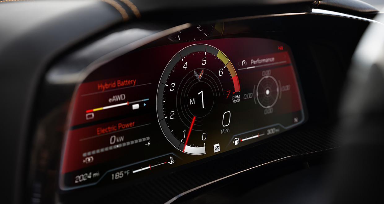 高速道路やワインディングを走らせると、この車の真価は静かなEV走行ではなく、むしろダイナミックな加速とコーナリング性能にあることが実感できる。フロントモーターへの電力供給によって、過去のコルベットと比べて一段とスムーズで、高速域でも抜群の安定性が確保されている。ステアリングを切ると自然にコーナリングが始まり、フロントのモーターユニットの重量とAWDの効果が相まって安定した走行が可能になっているのがよく分かる。