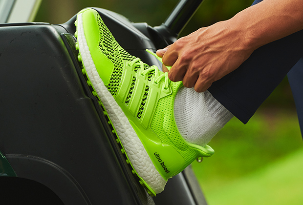 2015年の発売以来、ランナーたちから絶大な人気を誇る「アディダス」のランニングシューズ「ウルトラブースト」。優れた衝撃吸収性能と反発力で歴史的なヒットを記録したモデルです。初代のデザインをそのままゴルフシューズに落とし込み、人工皮革仕様の3ストライプスで、スイングを想定した横方向の安定性をさらに高めた一足です。