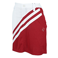 大人のトリコロールコーデ。モノグラム入りロングスリーブに半袖ポロを重ねる着こなしテクは、異素材のホワイトを取り合わせることで着こなしに立体感を表現してくれます。スカートは先ほど紹介したミントグリーンの男性用ショーツと同じく、パネルカットのスラッシュストライプ。全身ホワイトだからこそ、鮮烈に目に飛び込んでくる赤色の大胆ながらさわやかなアクセントといえるでしょう。